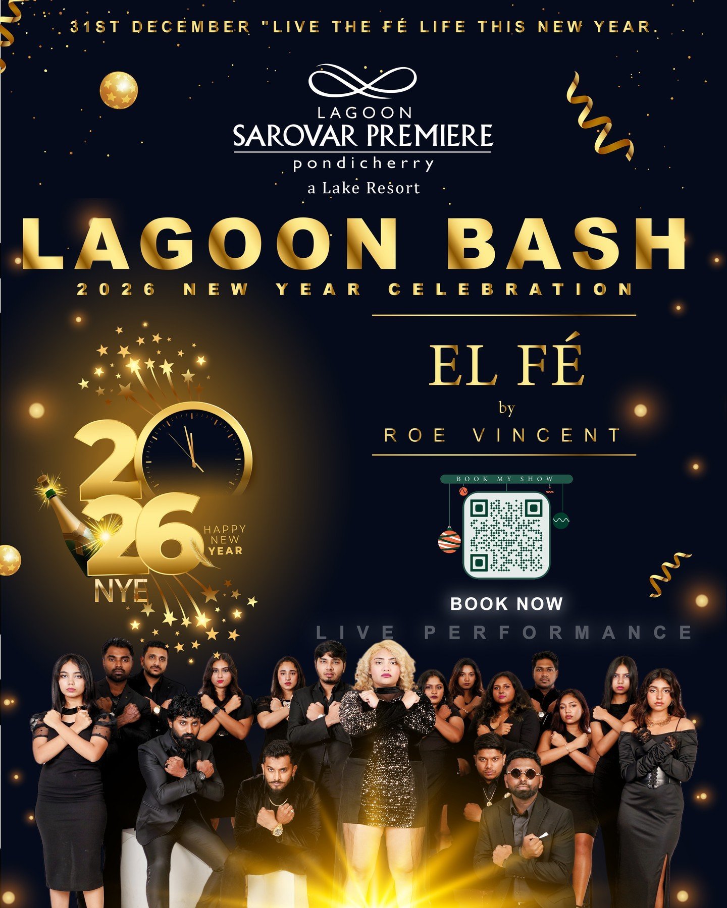 Main Attraction: Live performance by El Fé, a renowned choral vocal group and choir founded and directed by Maria Roe Vincent (often credited as Roe Vincent). El Fé is famous for their harmonious vocals, contributions to over 500 films (including work with composers like A.R. Rahman and Anirudh), and energetic live shows blending gospel, pop, and Indian influences. The group in the poster matches their style – a large ensemble in coordinated black outfits, led by Roe Vincent (the central figure in the sparkling top).