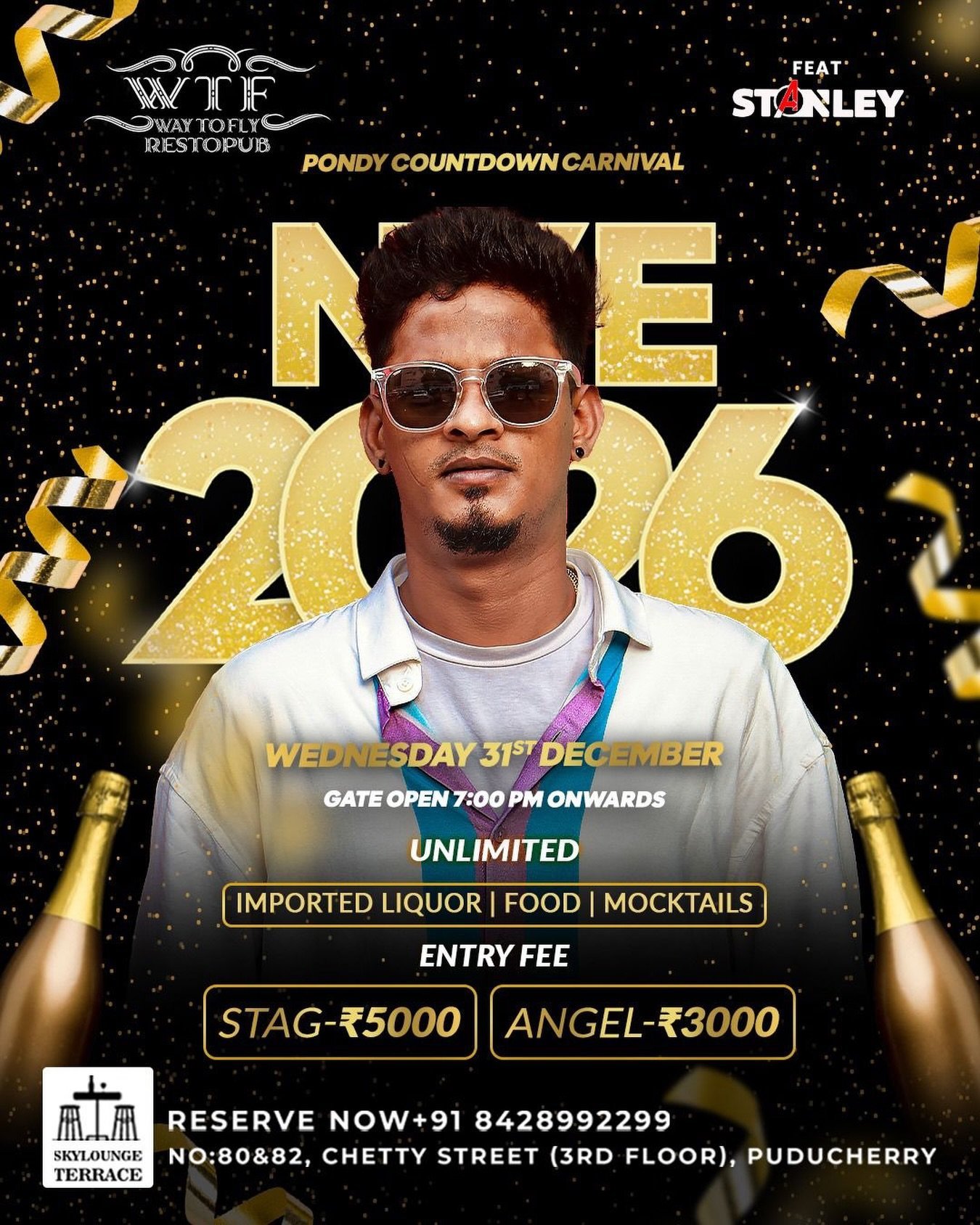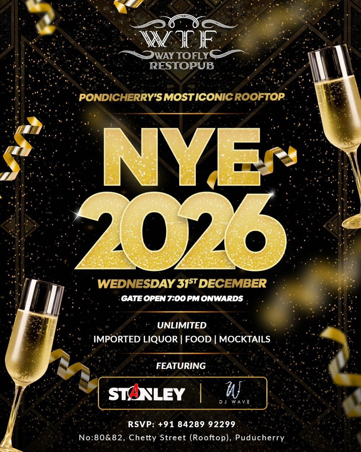 #WTFNYE2026 #PondicherryNYE #RooftopPartyPondy #NewYearAtWTF #PondyNightlife #NYE2026 #WayToFly #MostIconicRooftop