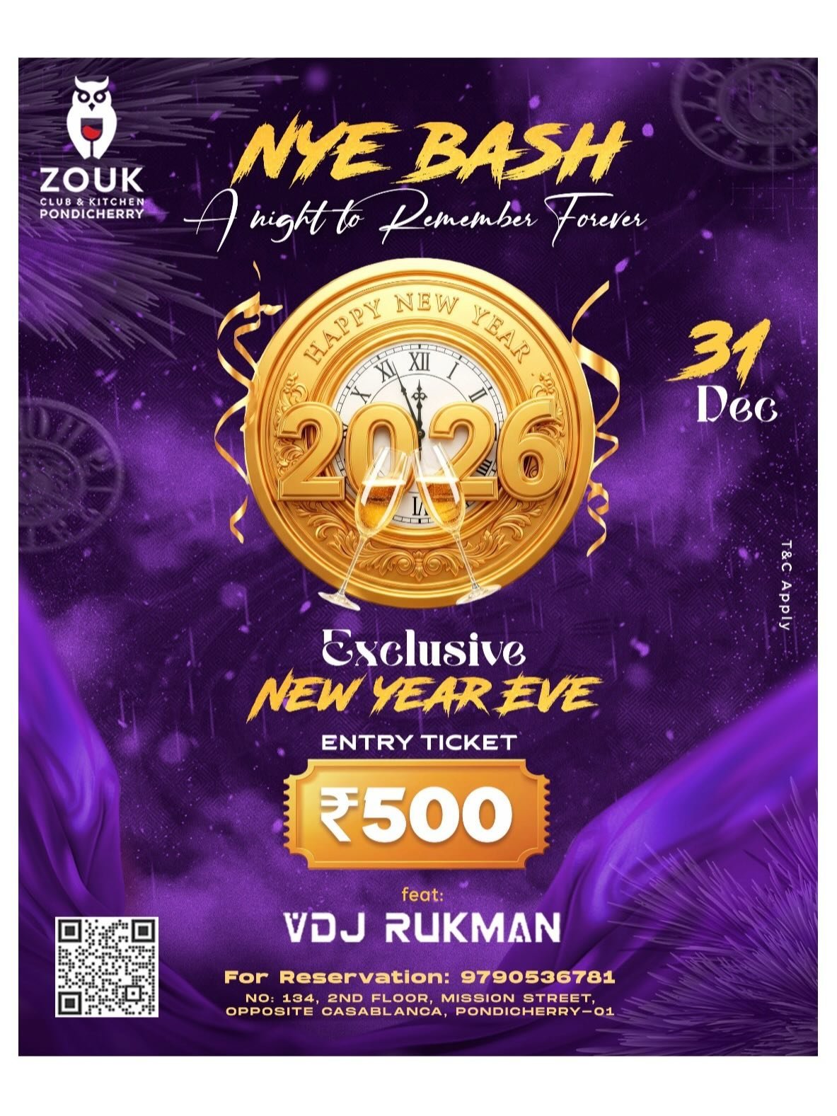 π NYE 2026 @ ZOUK CLUB, PONDICHERRY π