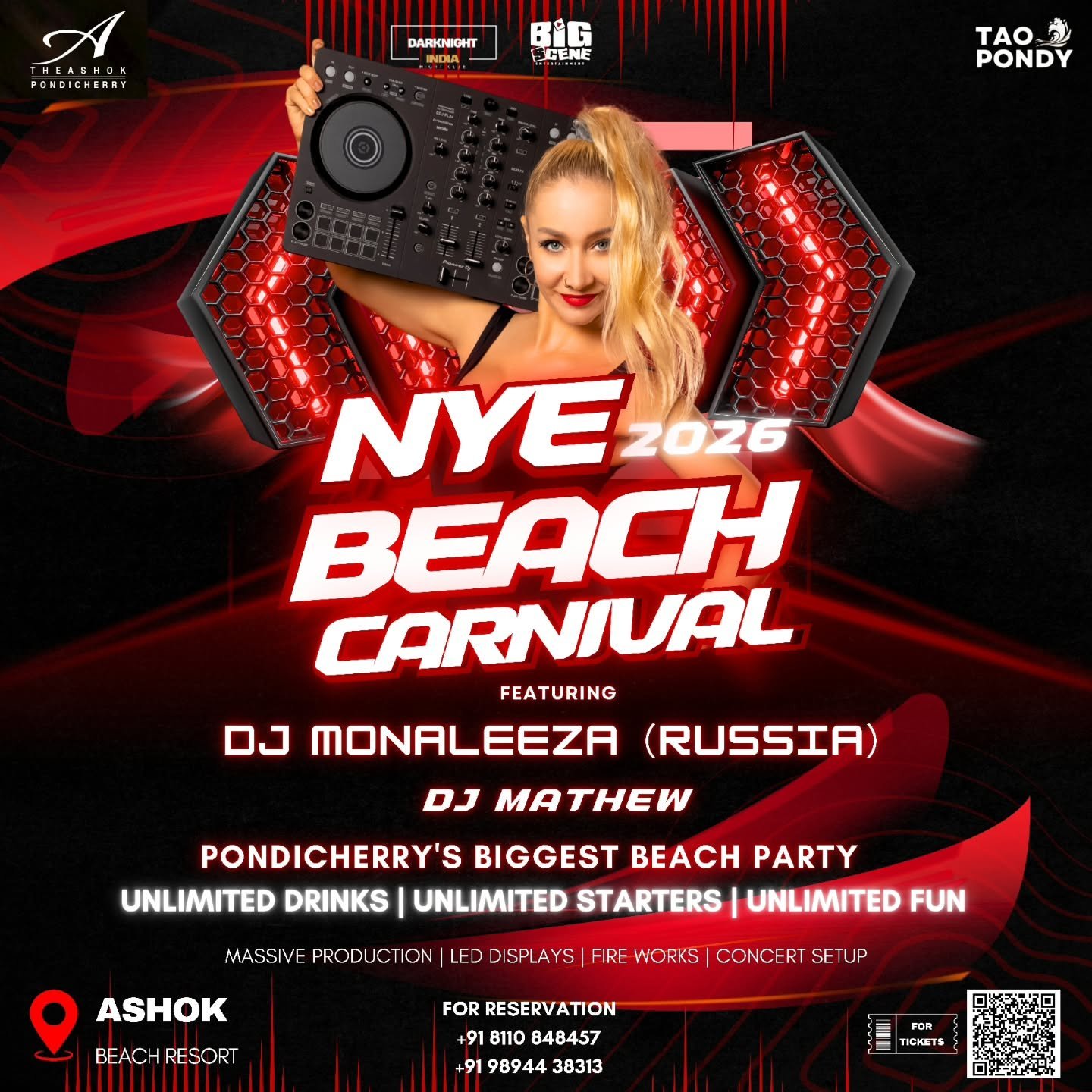 Ring in New Year’s Eve 2026 at one of Pondicherry’s most energetic beachfront celebrations — the NYE Beach Carnival 2026. Set against the picturesque backdrop of the Bay of Bengal, this carnival blends vibrant beats, seaside ambience, and non-stop festive energy into an unforgettable night. Whether you’re with friends, a couple, or making new connections, this event delivers high-octane vibes to welcome the new year in style.