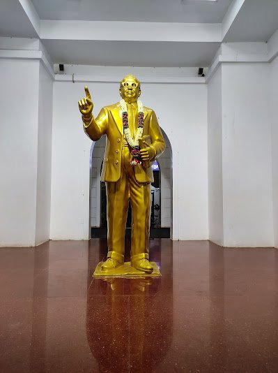 The Ambedkar Manimandapam in Pondicherry is a memorial dedicated to Dr. B.R. Ambedkar, the principal architect of the Indian Constitution and a prominent social reformer. Situated along Beach Road, the monument features a golden-colored statue of Dr. Ambedkar housed within a striking white structure, making it a notable landmark in the city.