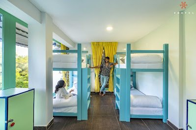 Zostel Pondicherry, located on Auroville Road, offers a vibrant and social atmosphere for travelers seeking a beach getaway. The hostel features a pastel-colored theme with clean interiors, traditional entryways, and a picturesque cashew tree in the front yard. Inside, guests can find cozy corners with cots or swinging chairs, perfect for relaxation. Each floor includes a common area, and the rooftop serves snacks and drinks alongside games, fostering a communal experience. Accommodation options include private rooms and spacious dormitories.