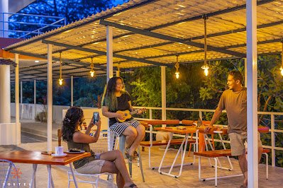 Rooftop Café: The rooftop café serves snacks and drinks, providing a space for guests to unwind and engage in games, enhancing the communal experience.